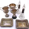 3 silver trophy cups, pair scent bottles, pair silver stamped dishes