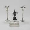 collection of miniature silver trophies