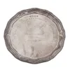 AN IRISH SILVER POTATO DISH RING (2) — Pierced and embossed with figures, floral and foliate scrolls and animals, between plain rims, otherwise engraved with a coat of arms and motto within a rococo c…
