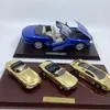 Vintage die cast Fine Jaguar Model Interest ;Maisto 3 gold 22ct plated jaguar toy die cast cars on a plynth with certificate and also a TAG model Blue Jaguar car precision model boxed. ( 2 sets boxed