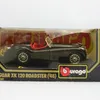 Boxed 1/24 scale model of a Jaguar XK120 Roadster from 1948. Black bodywork and red interior. Boxed. Box shows signs of wear and damage. Model is in excellent condition.