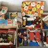 large collection of 1960's-1970's loose Lego including Railway parts Gear sets (boxed) Ship Hulls and all types of Bricks Doors Windows and other parts (large qty in 11+ small plastic boxes in