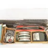 Trix: A collection of assorted Trix boxed and unboxed track, accessories, controllers, and buildings. Mixed condition, original boxes. Controllers untested for working order. Please assess photographs…