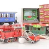 Marklin model train interest.Vintage German trains and station metal antique vintage buildings -includes loco-some a/f , carriages and tender/trucks and a WC metal buiding and a long station and also