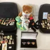 Vintage Hard Rock Cafe Beannie bears collectors items teddy bears toys and a large selection of soft cased Hard Rock Cafe metal pin badges and ephemera and brooches 0 across a box and 3 soft cases-th
