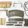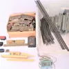 Model Railway interest including track and many rail pieces and large box of trucks and a boxed 1970s hornby part set and ephemera. (Selection)