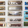 A collection of model trains, buses and trams