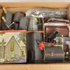 A collection of assorted boxed and unboxed buildings and other assorted trackside items and accessories. Large quantity in five boxes.
