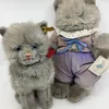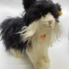 Steiff Possy Norwegian standing cat c 13” x 20” as a guide with chest card tag and label and yellow button tag-shaggy fur vintage toy cat, from the Possy Family series (1)
