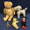 Collection of 5 vintage plush toys including 1950s Mickey Mouse by Semco, dog, monkey and 2 teddy bears.