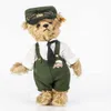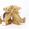 Steiff pair of teddy bears to include a 654640 brown Saturday teddy bear in apron and gardening watering can c 9” and a Christmas parcel steiff teddy bear 662614 golden jointed classic teddy bear with…