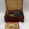 A collection of assorted toys and board games including Monopoly, chess sets, various cigarette cards and Meccano instruction books. General condition is good. Please assess photographs. (one box)